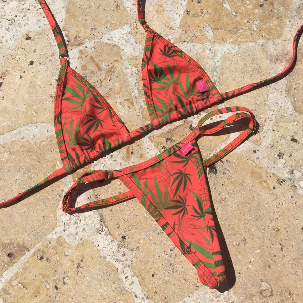 Orange Bud Micro Bikini: Our Classic Micro Bikini design and a beautiful Marijuana print over orange background. A wonderful bikini to start blazing moments!