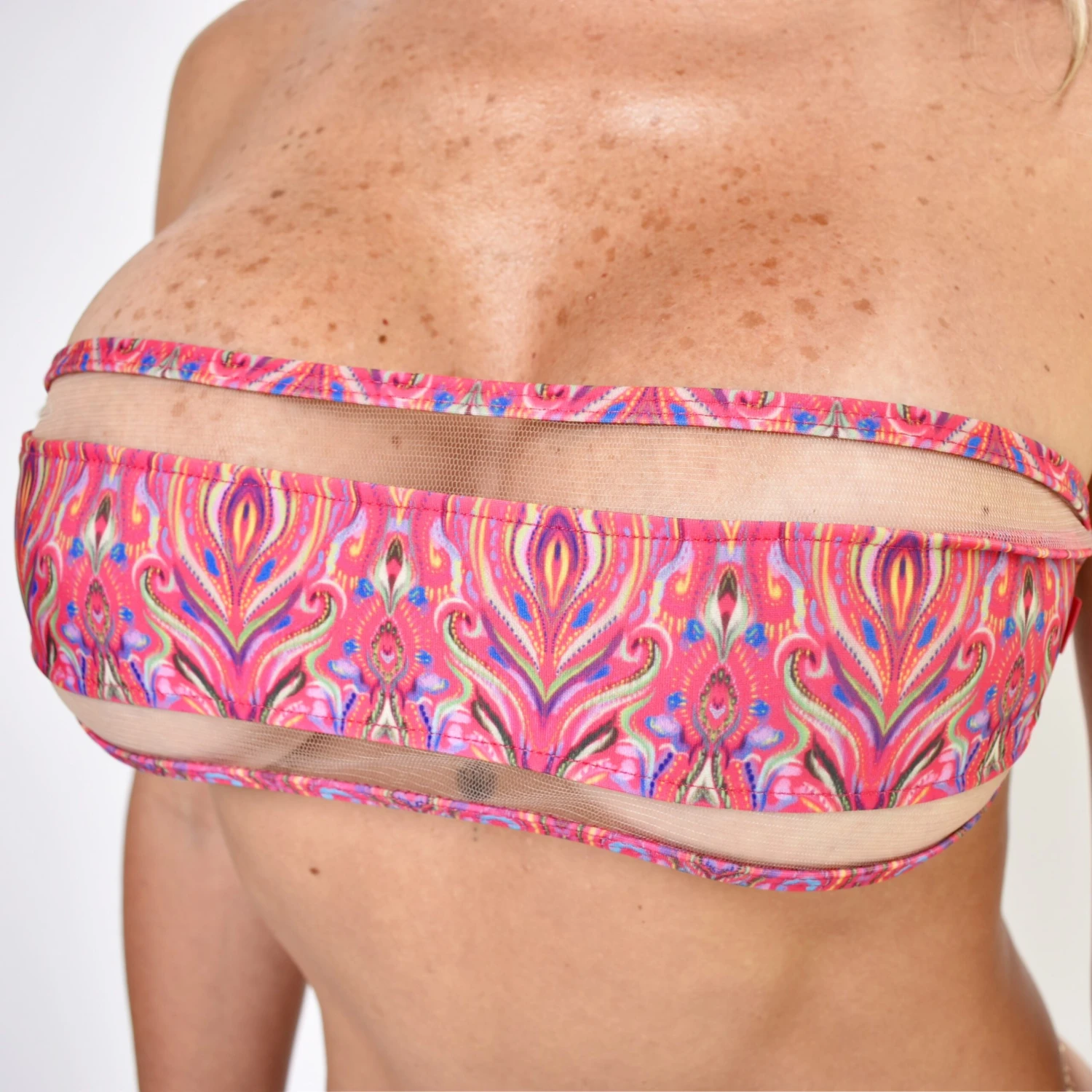 - Bandeau Top with sheer mesh accents.