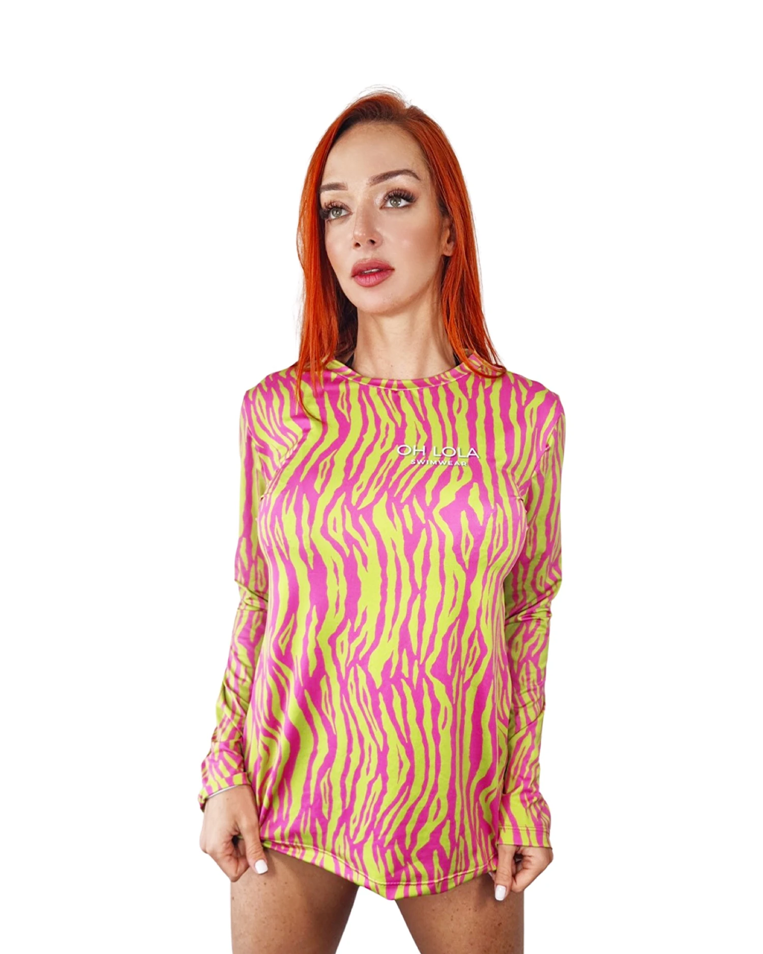 Safari Fishing Shirt Neon! Beautiful Zebra Print and Intense Neon Colors. Extremely hot and provocative!. Animal Print Fishing Shirt